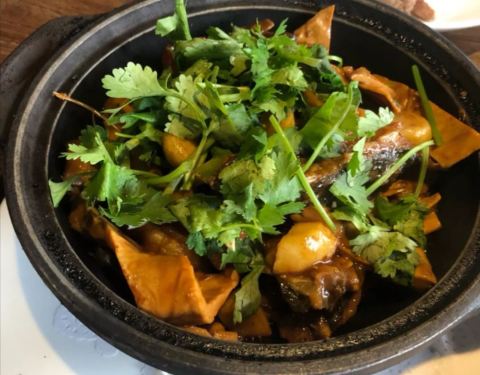 砂锅鱼头,味道还不错,鱼肉很新鲜,做的也比较入味, 很美味