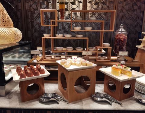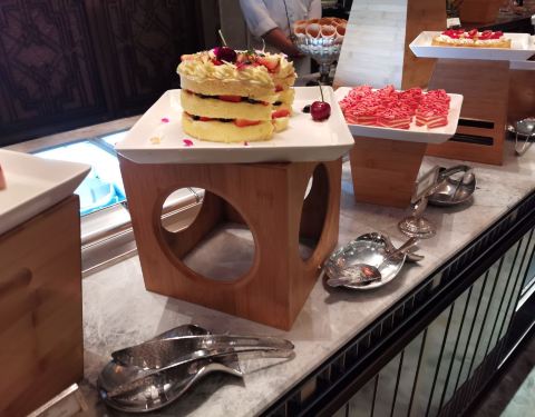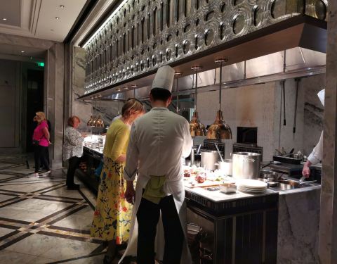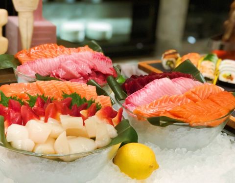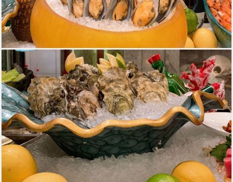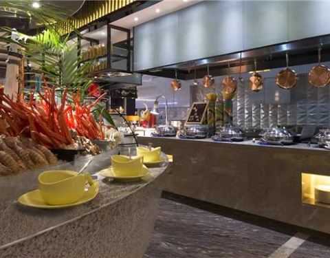 餐厅典雅舒适,华丽中式风很出彩,开放式厨房可观制作。各式中西美食种类丰富,海鲜刺身无限量供应,生蚝都是现场撬开,食材品质极高。甜品也值得品尝,为了保证品质,很多均为现做。