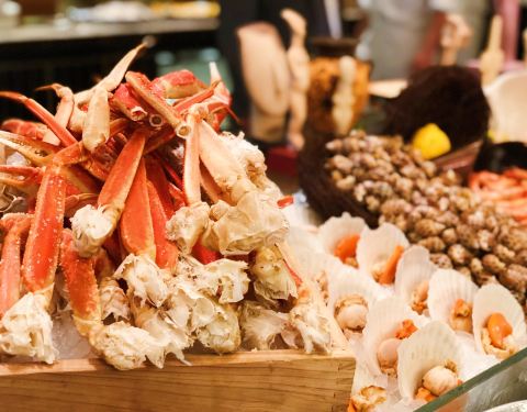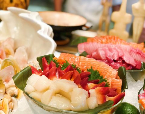 餐厅典雅舒适,华丽中式风很出彩,开放式厨房可观制作。各式中西美食种类丰富,海鲜刺身无限量供应,生蚝都…