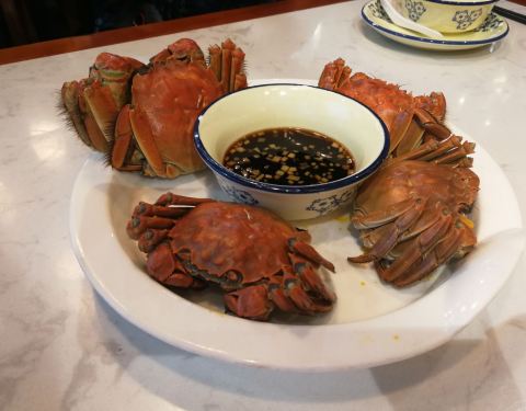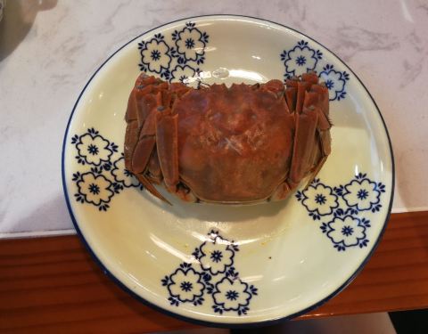 菜单跟网上推荐的不大一样,真正到店菜单里没有多少正经苏式菜,只能点了四只大闸蟹,蟹腿不饱满,差强人意。因为紧邻景区,到了饭点人还是很多