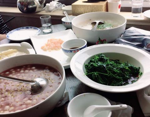 清炒虾仁真的很好吃!白什盘也好吃!豆沙圆子也好吃!