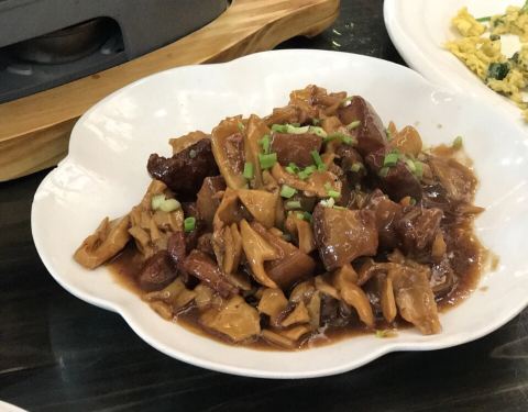 口味独特,有地方特色,黄山当地的云耳鸡,本地产的笋,最具有代表性的臭鳜鱼,肉色洁白,蒜瓣肉,...
