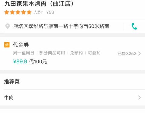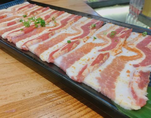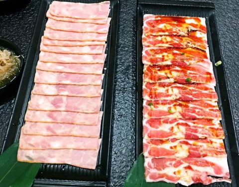 #曲江银泰店#晚上和朋友来大唐不夜城步行街逛,然后准备在银泰城解决晚饭,A馆比B馆餐稍微能多点。而且还有一个袁家村美食城,但是瞄了一眼人实在太多了,而且位置紧张,真要走的时候看到这个烤肉,一看是九田家...#曲江银泰店#晚上和朋友来大唐不夜城步行街逛,然后准备在银泰城解决晚饭,A馆比B馆餐稍微能多点。而且还有一个袁家村美食城,但是瞄了一眼人实在太多了,而且位置紧张,真要走的时候看到这个烤肉,一看是九田家,在西安门店挺多的,于是直接进来尝尝。每桌会给提供一瓶农夫山泉水和茶叶一包,后面再加需要收费。让店里小哥给推荐了一下,比较喜欢吃牛肉,最后点一份牛肋条和一饱口福牛肉,朋友给自己点了猪五花,上菜很快,服务员先给烤一下。后面需要自己动手烤了,更换烤盘很及时。总体烤肉味道不错,服务也好!