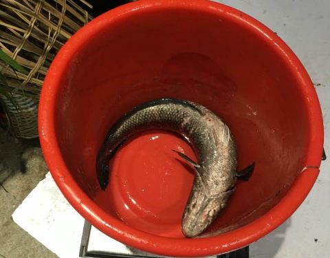 一锅鱼上来了,尝了一口,味道不错且量足,比外面吃的3斤的量多,信价比高。菜芯炒香菇香菇很少,大概就一两个切成薄薄一片,可见刀功不错,不过总体来说很不错。