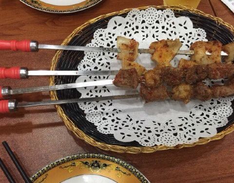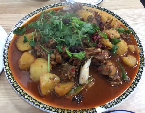 羊肉串没有嚼感、没有羊肉味儿,大盘鸡偏辣偏咸偏麻,也就包菜炒馕味道还可以(然而也有花椒)