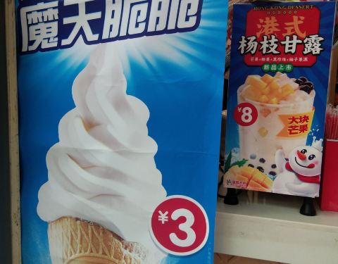 蜜雪冰城在桂林还是小有名气的,也开了很多门店,正阳步行街上也能买。它家饮品性价比很高,基本都是十元以内的价位,经济实惠。不过在它家门店尝的是冰淇淋,现场买3元团购2元,超大一个冰淇淋,冰淇淋不会特别甜,虽然不是那种雪糕型,但是口味也不错,而且外层脆皮也很好吃。