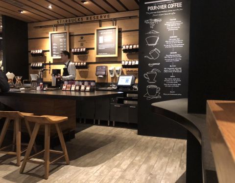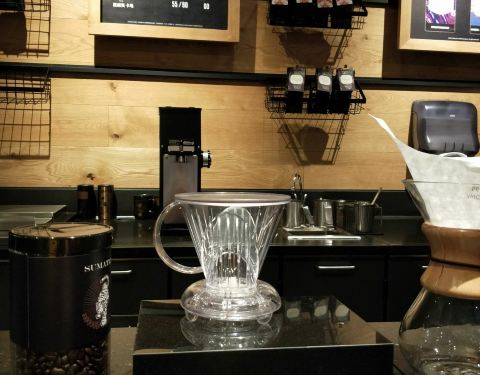 八佰伴附近的星巴克,除了这家还有时代广场的那家,这两家的生意是最好的。 但这家的手冲比较有特色,价格可能比其他门店的高一点,难得看见有雅致的,所以点了一杯雅致手冲。因为选的是店里喝,感觉上份量多了很...