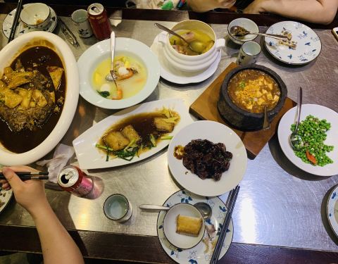 叶马茶楼 还蛮多朋友推荐的一家餐厅,开了分店 但是分店大家都说不行,就来了老店 刚好是带着远道而来的小伙伴试试杭帮菜 停车的话停旁边六和塔停车场,10元一小时 没有停车券的~不过停车还算是方便的。 装修是偏老派的,带着点其他的风格 但是中餐厅的话真的是感觉特别油腻腻 就是感觉卫生什么的做的并不算很好吧 然后服务也挺一般的,基本就是扎堆聊天 也没有什么交流什么的了,没啥感受。 两个人点菜其实还是有点难的,随便点了下。 菜的选择真的不多,朋友爱吃辣菜 点了青椒茄丝,不算特别辣,还蛮香的, 大概主要是淋的汁调的比较有意思…… 但是这样的冷菜,也吃不多的。 糖醋排骨是从小就爱吃的,也很下饭, 基本很多跟我一样的杭州人都爱, 这里的糖醋汁比例还是非常不错的 酸甜比较适中,排骨是带肉的,还不错, 就是外面裹粉炸的不算特别好,口感一般。 三鲜汤,也是杭州菜馆里比较点的多的一道汤 但是这里的似乎改良挺多的了,料略不同, 汤头味道不太喜欢,不是传统的味道了感觉 所以汤都不愿意喝……基本都留着了。 香干牛蛙也是朋友点的,因为是辣的缘故 这道菜还是非常带感的,不是特别辣, 味道也不错,烧的入味,口感也好。 总体来说一餐吃下来还是不错的吧, 但是出彩的地方并没有感觉,性价比一般般 基本菜都是50-60起的吧。