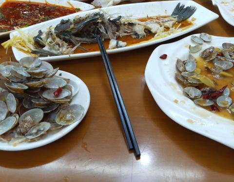 这是到杭州打卡的第一家餐厅,总体还算不错。 首先强烈推荐|清蒸大白条^,鱼是先用黄酒腌过,很入味,非常鲜美,完全吃不出鱼的腥味。 |龙井虾仁^也不错,虾很新鲜,肉很Q,蘸上醋,满嘴都是虾的鲜味,就是略微有点咸。 |黄鱼鮝烧肉^的东坡肉很酥软。 |糖醋排骨^看点评点的,很失望,不知道是不是没发挥好?面厚而且炸的非常硬,口感很差。 [环境]明亮宽敞,人多时候有点嘈杂。 [服务]比较热情,倒水很频繁。 除糖醋小排外总得来说还不错,给个四星吧。