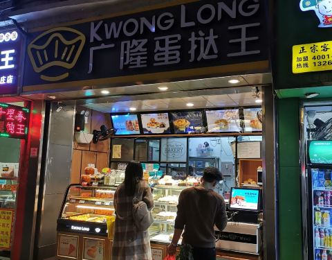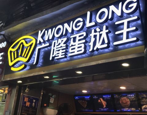 广隆蛋挞王在区庄众多食店中最有洋味,无论是其产品、店内众多地道的英语,还是其名字的粤语味英译