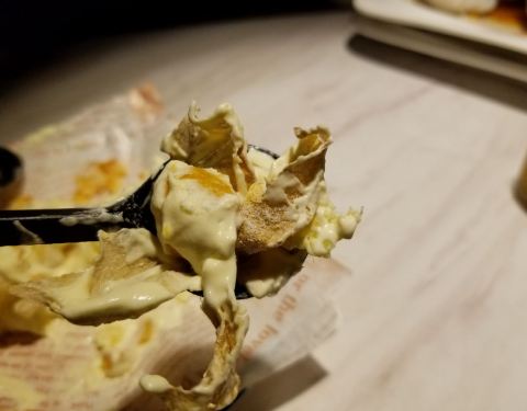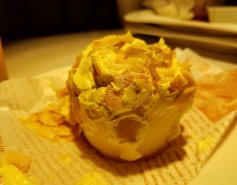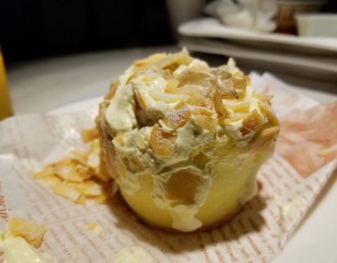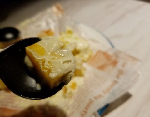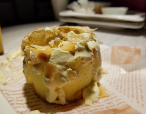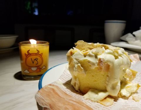 经典爆浆……爆不出的浆…… #魔都VIP养成第3天# 2018-12-8 射手女和摩羯女每年12月的约定 社团三当家ID:请叫我韩文名:夏多肉,下班带过来的经典爆浆!杜哈夫躺在艾小米的list已经好久好久了,所以三当家一说去买那家的蛋糕,艾小米双手双脚地赞同! 日月光带到大宁的餐厅路途有些远啊,之前刚刚翻掉一只蛋糕的艾小米心有余悸,千叮咛万嘱咐,打开蛋糕盒的一瞬间,还是……拐交了[笑哭][笑哭][笑哭] 颜值肯定受损了,但讲真,根据残疾了的蛋糕来看,原来的颜值也不会那么滴高 |经典香草爆浆^68米,太贵啦巴掌大的蛋糕,爆浆,真的是没有!味道呢还不错,奶油用料很纯正,里面有新鲜芒果颗粒,头上好像还顶了一只白果,还有白果的须须头当作蝴蝶结来装饰! [环境]据三当家说,真的很一般,真的很照骗