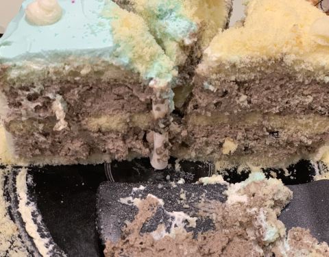 最近比较红的蛋糕店,没去实体店购买,通过电话订购外送的,服务很不错。蛋糕现做的,选了海洋系列,看着很清爽,里面是奥利奥的,很特别,有点冰激凌的口感,很不错。