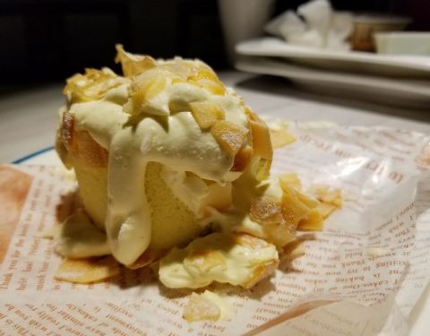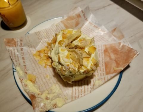 他家室內和室外都有座位可以坐,下午1點半左右去的,店裡沒啥人…菜單還比較簡單,甜品和飲料可以單點,不過點套餐會比較划算。一款甜品+可以各種類型的飲料,點了經典香草爆漿蛋糕味道還不錯…不會太膩…盤子也很漂亮!