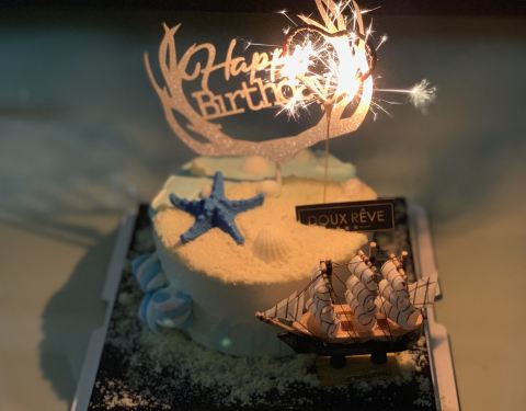 - 蛋糕现做的,选了海洋系列,看着很清爽,里面是奥利奥的,很特别,有点冰激凌的口感,很不错