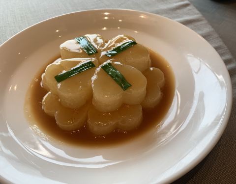 看名字就知道在江边的啦 没先进去先去周围看看,有桥有水 风水不错,而且这里杨柳都绿了,一片绿色景象 很舒服 包房的大玻璃窗,可以看到窗外的景色,椅子很欧式,很气派 聚会环境很不错 水晶吊灯很豪华 就连排盘都是每人一包湿纸巾,都已经打开待用 还有特色巾箍,小鸟还挺重的 冷菜里的狮头鹅还是很有特色的 这个菜也是知道一些的,这个在潮汕还是很有名的 价格也不便宜的 这个香气上还是很浓郁的 口感上皮与肉之间么有什么多余脂肪,有腌制的味道,但是不会太过咸 脆鸡皮,单吃鸡皮还是比较少见的,这个菜我家小芒果一定很喜欢的 橘子葱油饼,这个造型实在可爱,下面的底座是小葱油饼,但是不会油腻 两头乌蒸红膏蟹 每一块蟹腿肉上都被覆盖了蟹膏,红红的很是好看 底盘铺满了金华两头乌,特别的鲜嫩,吸收了蟹的汤汁 龙虾麻婆豆腐 这个特色麻婆豆腐竟然还能和大龙虾做组合 下饭一级棒 雪花牛肉 里面的黑蒜可谓是十分有营养的,小菌菇也不错