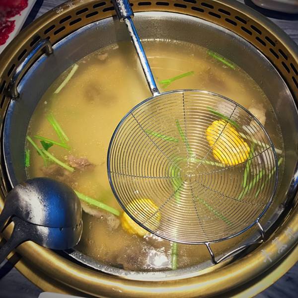 #特色锅底# 锅底已有牛腩肉和萝卜玉米等,清亮的汤色,适合涮肉;