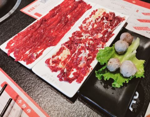 - 套餐内的三种肉类口感不一,但共性就是新鲜!两个正在健身的女孩,相约吃牛肉火锅无疑是最好的选择