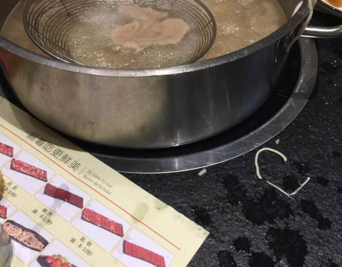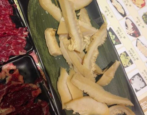 #胸口油# 这个是完全脂肪,需要烫1-3分钟,口感是脆弹有韧性,喜欢的人会很喜欢,有油脂的香味;