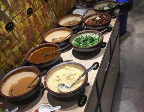 牛基地主打潮汕牛肉锅,只选有温度的好牛,半开放式的橱窗,现点现切新鲜程度看得见。 为了照顾爱吃辣的人儿,店里推出了鸳鸯锅,满足了我和朋友一个重口味一个清淡口味的人。 一次下锅一整盘,分分钟吃完!五花趾、雪花牛肉一次可以吃下好几盘!对了,店里的手打生肉丸味道也很好!!又脆又弹还爆汁!一次可以吃下半份! 店里的蘸水,既有已经调制好的,也可以自己DIY!个人还是最爱沙茶酱+花生酱+芹菜+香菜,无论是吃肉还是吃青菜都很百搭!配万物哈哈哈!