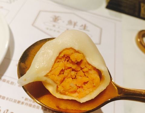 【蕾食札记】打卡董•鲜生,招牌菜是海胆水饺,选用深海海胆黄人陷,在新鲜猪肉粒的陪衬下,用优质麦芯粉手工擀制成的面皮包裹,确实是包不住的鲜美。另有黑松露鲜肉水饺、鲜虾水饺,黄瓜鸡蛋虾仁水饺、松茸野菌...【蕾食札记】打卡董•鲜生,招牌菜是海胆水饺,选用深海海胆黄人陷,在新鲜猪肉粒的陪衬下,用优质麦芯粉手工擀制成的面皮包裹,确实是包不住的鲜美。另有黑松露鲜肉水饺、鲜虾水饺,黄瓜鸡蛋虾仁水饺、松茸野菌水饺等,以供参考。亲测后,特别推荐的是图6,乍一看是甜品类实则鹅肝酱藕饼,软糯鲜美。