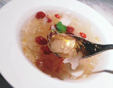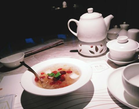 董鲜生海胆水饺店内环境优雅舒适,服务员态度很好,招牌菜是各种水饺,甜品也很好吃。 【桃胶雪莲】38一份,桃胶和银耳炖的特别粘稠软烂,入口即化,味道很好,淡淡的甜味,美容养颜哦。