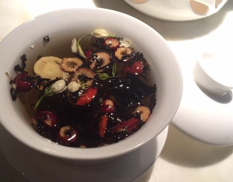幸好店里有暖心的盖碗茶,我点了黑糖姜茶
