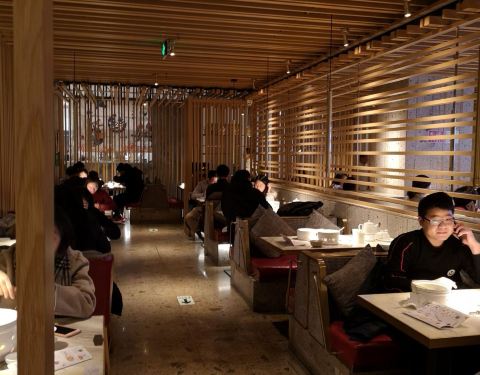 师傅在门口旁的透明橱窗里包着饺子,顾客...感谢点评论坛,感谢商家,在论坛活动中幸运获得董鲜生100元代金券,朋友获得50元抵100元,今天一起来杭州大厦D座5楼尝鲜啦。