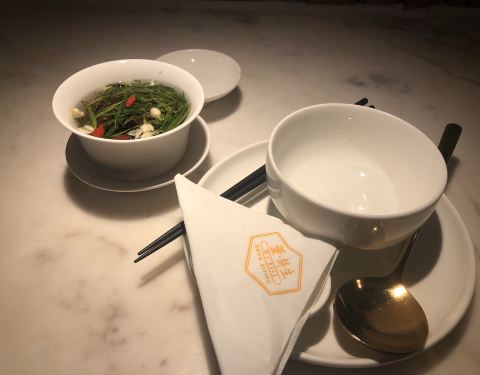 记得董鲜生刚在杭州开业的时候, 我就已经默默的加入收藏列表了; 喜欢海胆, 也喜欢水饺~ 所以,海胆水饺🥟就是最好的结合了; 离家最近一家就是印象城, 杭州估计现在已经开了十多家了, 如果对董鲜生垂涎欲滴的, 动起来~冬天里,水饺也是最好的陪伴; 喜欢董先生贴心的服务, 喜欢这种亲切但是又不过分殷勤; 喜欢在冬季里,汤品菜都有保温加热辅助, 不至于吃了一半都凉了; 💓点了招牌的鸡汤海胆水饺, 海胆味浓不腥,鸡汤香,点缀了芹菜,清新 我把汤都喝完了[笑哭] 💓雨天☔️骑车过去着实冰冷 幸好店里有暖心的盖碗茶,我点了黑糖姜茶 刚好去去寒~ 💓荔枝小番茄,凉菜,当水果来吃了, 荔枝的甜中和了小番茄的酸,一口一个刚刚好, 第一次吃到了剥皮的小番茄,印象深刻~ 💓虾油泡饭一定要凑热吃,不然等脆香米软了口感就变样了呢 💓青豆汤里以外的发现软糯香甜的黑豆,真的加分,JD吃到惊艳不已,说回去自己煮来吃吃~ 最后还点了份鸡翅,完美,如果不是两人同行,点这些已经吃的很饱了的 #辣辣的生活分享##杭州美食#
