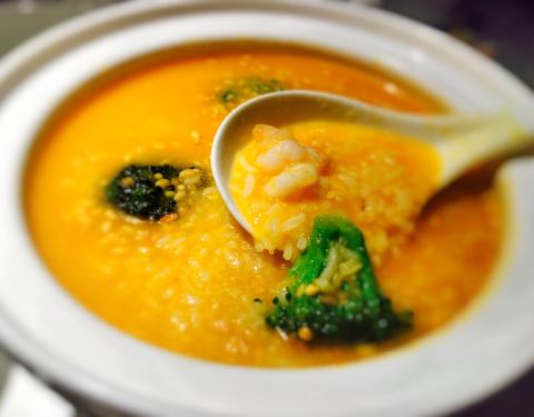 |虾油泡饭^招牌之一。杭州人爱吃的虾油,搭配特制大米,新鲜虾仁,满满一大锅,虾油味很入味,放一些辣酱调味后更是棒棒挞。