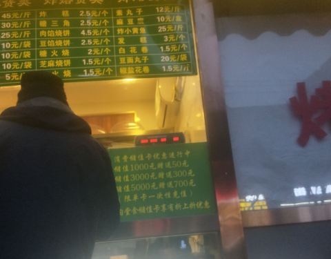 生意火爆的小吃店,豆馅火烧香糯料足。