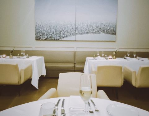 餐厅周预定的体验,非常不错。无论是从保安大叔还是到洗手间阿姨,服务都非常专业有礼貌,给每一位宾客最佳的体验。餐厅的色调是一种高级的忧郁感,搭配餐桌上的花和蜡烛,充满了冷遇的浪漫。 特别喜欢这里的冰水,是柠檬叶的味道,很喜欢。套餐是晚餐标准的三道式,餐前面包的韧劲很法式,前菜色拉精致又好吃,牛肉和甜品的摆盘也是专业又艺术,雨天来这里也很有调调。