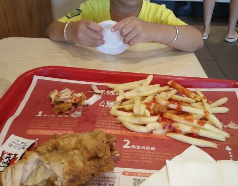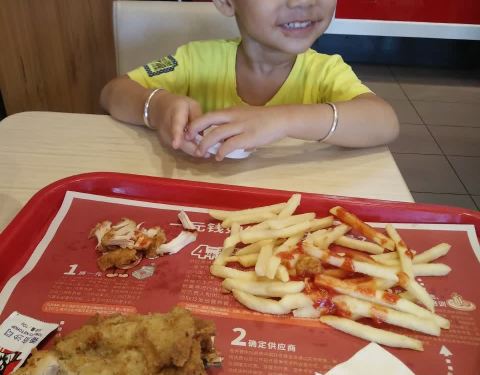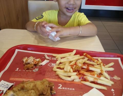 每次走到那里宝宝都要进去吃肯德基,很喜欢吃里面的薯条