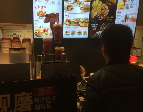 肯德基现在每一个餐厅都重新装修过了的餐厅,看上去很不错的样子,然后还可以手机点灯这手机点单臂多了,可能是因为有了手机点的关系,有的时候还会出现那种就是人工点的排队排很长很长但是要我们手机点单