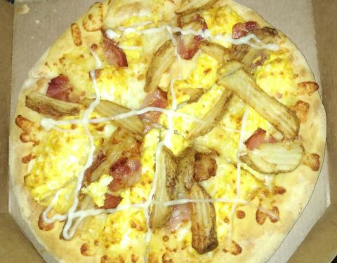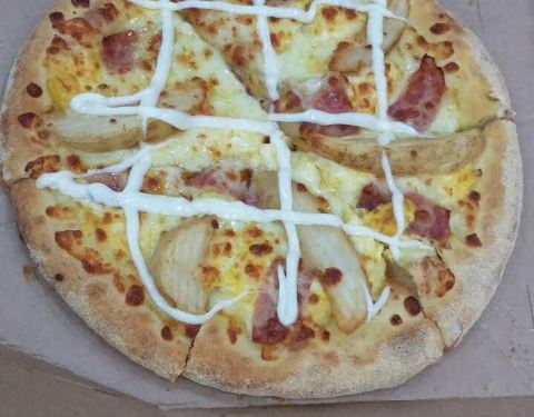 ...豆比萨没有吃过,也来试试,实际与想象的有点出入,培根不多,土豆都是薯角,中间的美乃滋感觉像炒蛋