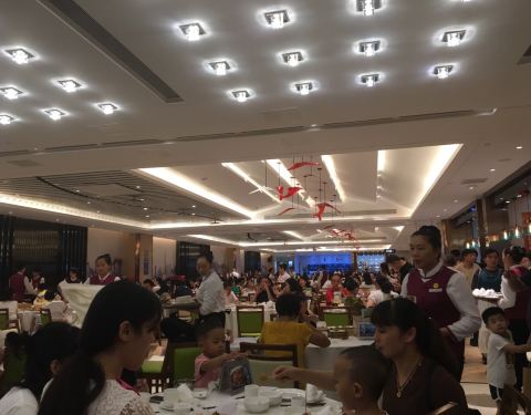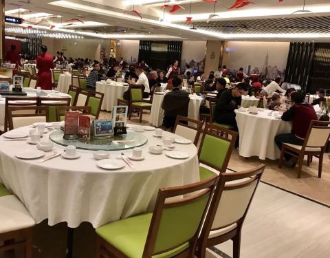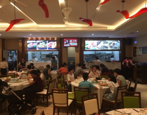 店堂挺大,放满了圆桌,中午时分基本坐满