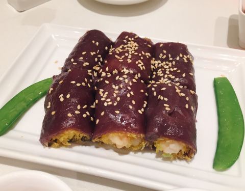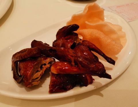 再也不会来这家潮福城了,真可怕。 给我推荐的红豆汁,难喝到上天了都,真的是难以下咽。 烤乳鸽也是有种怪怪的腥味,很不好吃了。 唯一能吃一点的就是这虾多士了,可惜过于油腻了,就不那么好吃了。 难吃,真的是太难吃了,再也不会来这家店吃了。