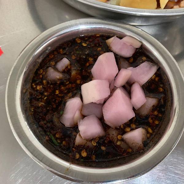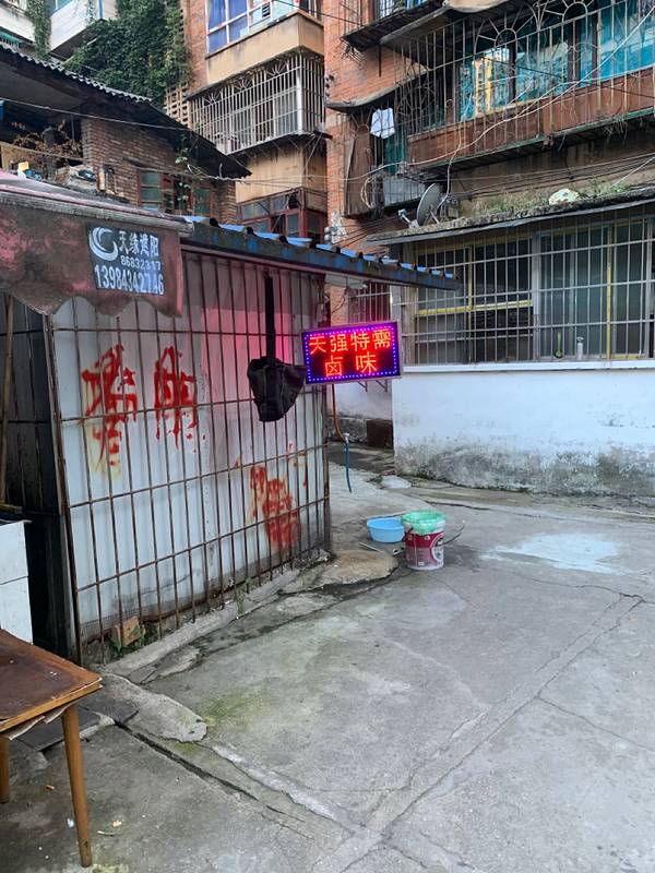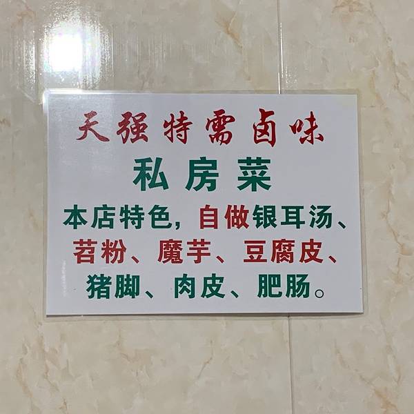 这是一家深巷中的美食店,本地人找起来都很费劲。 位置:云岩区宝山北路贵州日报社对面天桥下的小巷中,进入小巷后沿着指示牌方向走即可找到;环境:虽然身处小巷中,门外环境差了些,但是店内卫生条件却一点都不含糊。不锈钢的方桌、整洁的地面、厨房中干干净净,没有一点杂乱。墙上的宣传特地标明选用名牌食用油、大品牌的调料,让食客放心。店内分为两间,靠里的一间有2张桌子,每张可以容纳4个人,私密性较强。外面有5张桌子,店内估计总共能坐下30人左右,所有桌面都抹得亮晶晶的。 营业时间:早上11点——21点,周日以及节假日休息;味道:小店的核心竞争力是口味,他家几乎满分。 汤汁:汤汁是贵阳卤味的灵魂,他家的味道浓郁,很讨人喜欢。 蘸碟:蘸碟拌好了放在进门处,蘸碟选择的是贵阳传统的糊辣椒,食客只需要按需往里面加入甜萝卜丁即可。(萝卜是紫色的,询问老板后得知是和甘蓝一起泡制的,颜色正常)。 板筋:非常不错,糯糯的很有嚼劲,不带一点杂肉。不过3岁以下的小孩子可能吃不了。 肉皮:软糯入味,老少咸宜,他家的特色之一。 莴笋叶:因为汤汁稍油了一点,吃起叶子菜来会略显油腻,但是烫制的时间刚好。三大一小消费107元,性价比非常高,推荐!