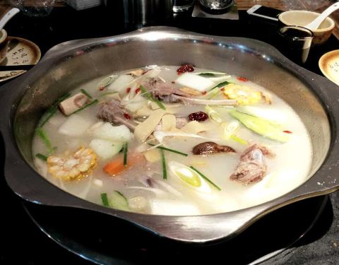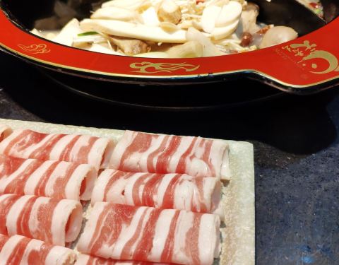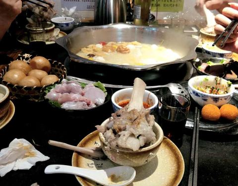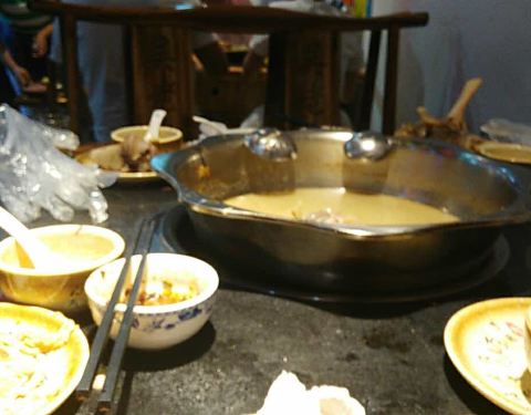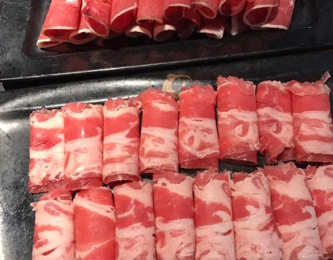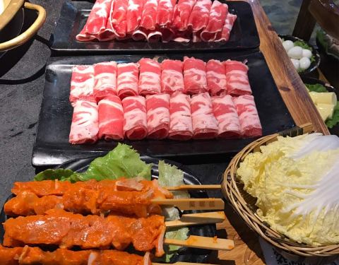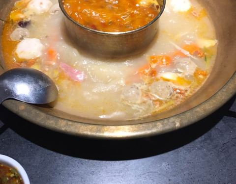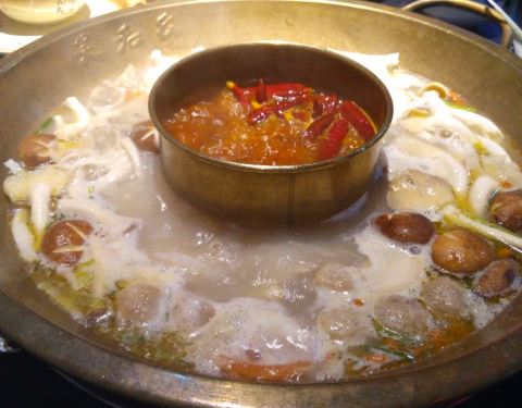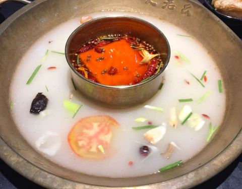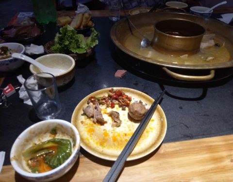 - 鸭血口感很好,虾滑有点鲜甜。菜式原材料新鲜,鸳鸯锅是三式:菌菇、番茄、麻辣各三分之一
