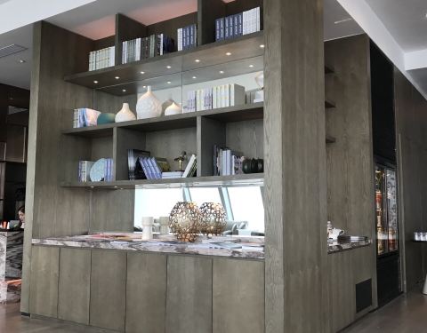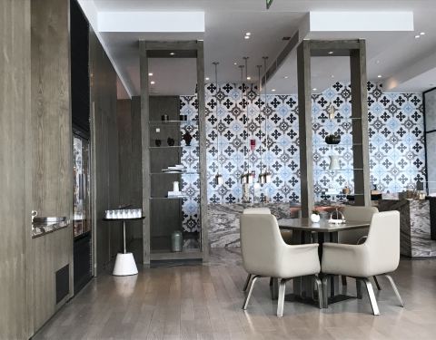 位于酒店54层的海岸行政酒廊,可办理行政房退房手续,因为时间尚早,顺便坐坐,喝些东西。非下午茶时间,所以台面基本是空的,冰箱内有各种饮品,工作人员服务都很热情、细致。酒廊窗边座位刚好看到厦大全景,比到里面溜达一圈方便多了,还有沿海高架,不错。下午茶大约15:00开始摆放各种小食。