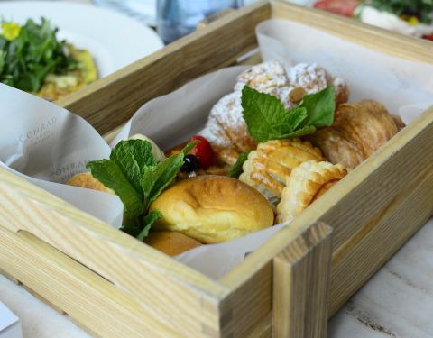 一顿丰富的早午餐,拨开周日的阴霾密布。 康莱德酒店54层的海岸酒廊不仅坐拥无敌海景和鼓浪屿远眺全景,还推出了丰富多样,营养惬意的地中海风情早午餐。 意大利主厨研发烹制,从简单的嫩滑的培根蛋卷或是酱汁细腻的班尼迪克蛋开始,面包篮里装好了五种风味各异的面包,热乎乎的汤碗里已盛好暖醒味蕾的浓汤,每款拼盘都盛满肉蛋荤素,美味营养,多款肉品海鲜带来充实满足感。 喜欢嫩白马苏里拉芝士配上鲜番茄的柔酸细嫩;喜欢粉嫩诱人的薄切火腿卷起蜜瓜的清爽甜脆;喜欢浓郁番茄汤配菲达芝士的酸甜奶柔;喜欢法式吐司包着肉桂苹果的夹心。 一杯甜爽起泡酒,静静享受周末上午几小时的闲逸时光。 at 康莱德酒店海岸酒廊,世茂双子塔A座54层
