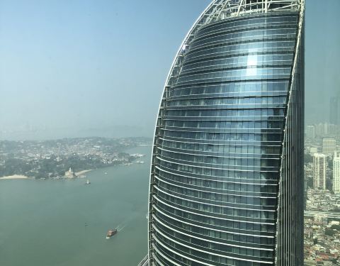 厦门超高的餐厅,可以一边品尝美食一边欣赏鼓浪屿的景色。