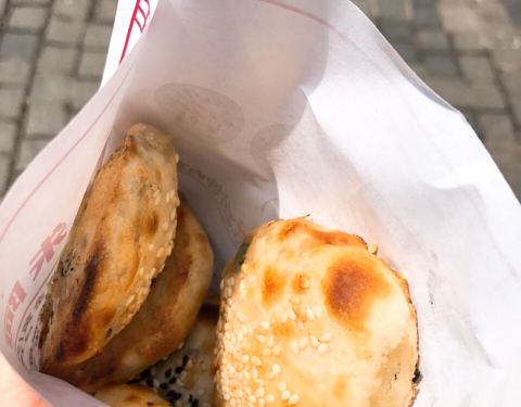 蛮多人推荐的 内馅是葱肉、牛肉、梅干菜肉等,大小烤饼可选,价格相同的小烤饼可以几种口味拼 生意...