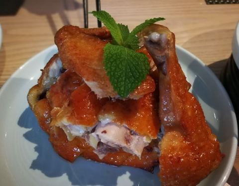 知味小馆 很熟的名字 原来是知味观同一公司旗下的 走的是小清新的风格路线 这家店离西溪湿地不远 属于最近的商业区了应该 人气还挺足 一个人吃不了许多 点了招牌的麻鸭 出菜后服务员会先端上来整只以确认 在得到认可后 会再端回去进行拆分 服务非常细致 包括帮忙倒水以及餐后询问客人用餐是否满意上都表现很得体 虽然麻鸭毛弄了不干净不是很满意 但服务不错 可以试试其他菜