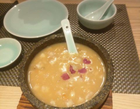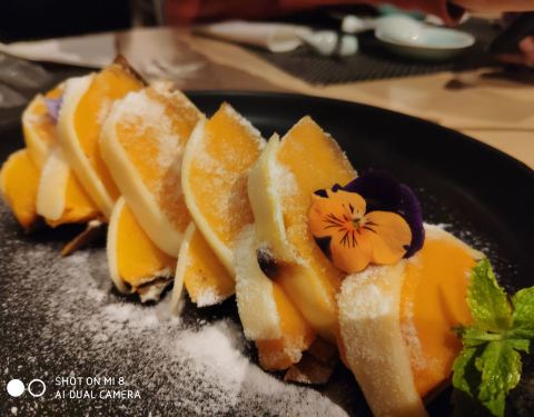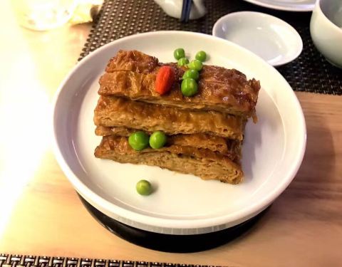 香芋羹很香,龙井虾仁清香q弹,虾仁小笼包是我的菜,榴莲班戟也不错,唯有陈皮牛肉没能光盘,感觉像五香豆腐干,早上配稀饭吃应该不错。总之环境好,口味佳,非常推荐。
