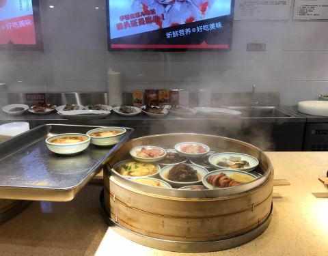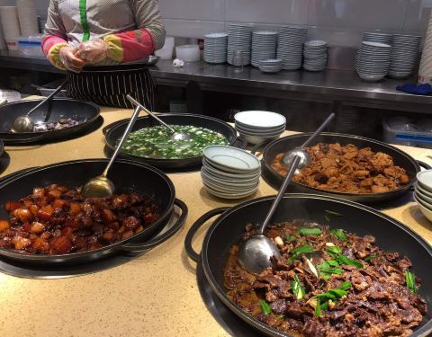 住的酒店附近,餐厅不大看上去很干净整洁,早上有包子馒头糕点还有面条馄饨,中午和晚上有炒菜米饭,不想去餐厅吃饭时在这里解决很实惠。
