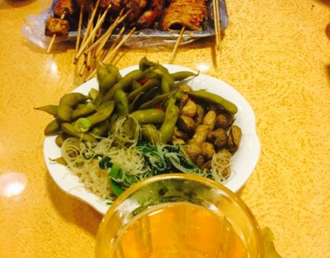 因为想吃烤串,感觉以前吃得挺好,跑过来才知道只有晚上有烤串,大失所望。点个烤鸭木有,又点个什么肉,也没有。最后点了几样家常菜,鱼香肉丝,铁板牛柳,腰果西芹,土鸡汤。铁板牛柳的做法完全颠覆了我们的认知,竟然是这个颜色这个配菜,土鸡汤用的是滑子菇,味精的鲜味而已,鱼香肉丝都不值得打包,只有腰果西芹得到大家的热心,这家店也就是个食堂水平,味道一般,价位还算公道。平下来每个人40元的模样。