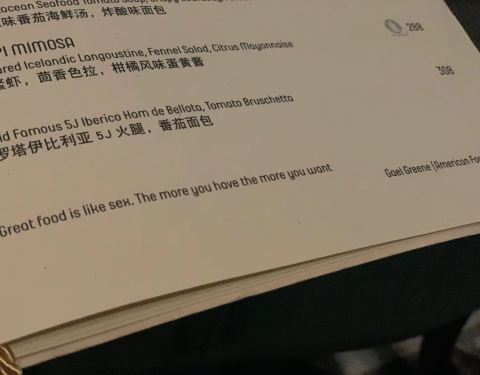 Dandy餐厅酒吧,米房五楼的酒吧,门口的“温州喝酒技术人才基地"这么有特色,才想起以前路过曾经感叹过。晚饭点过来人不多,环境幽暗,都是沙发矮桌的搭配,坐着舒服,适合朋友小聚聊天,不过对于专注于吃的吃货来说,全程要弯着腰吃难免有点费劲。 菜单没有图文搭配看着比较小本
