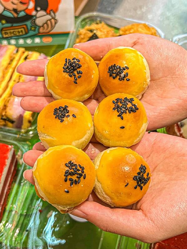 【mini蛋黄酥🍳】 新鲜出炉的蛋黄酥色泽金黄诱人,小小的一个也太可爱了吧!表皮酥脆,内里的红豆沙和咸蛋黄搭配的刚刚好🏻吃再多也不会腻~
