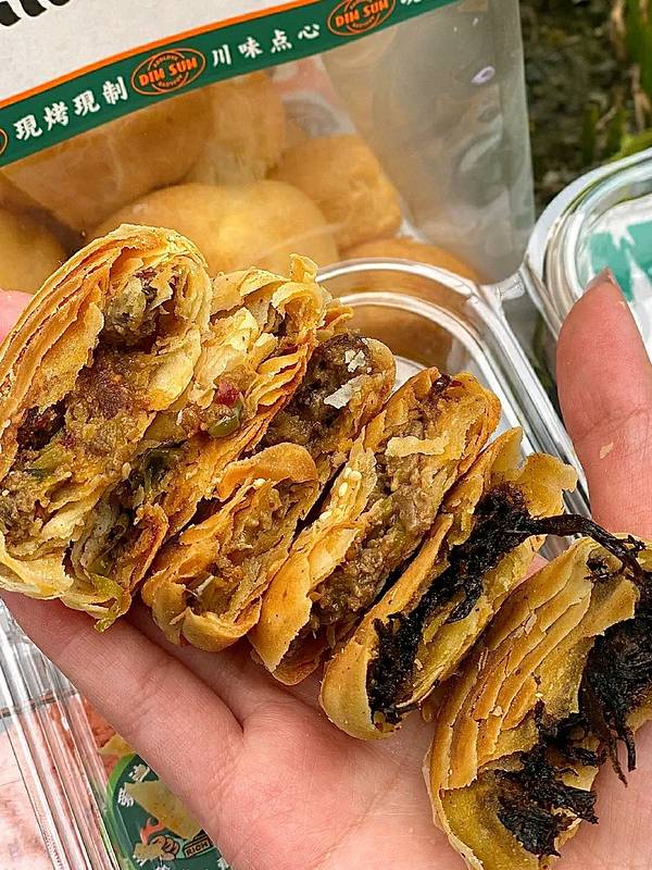 小盔酥: 有椒麻牛肉味,梅干菜味,都巨好吃!就像是迷你锅盔一样,焦脆有嚼劲,就连我爸平时不喜欢吃这些的都忍不住吃了两个!!