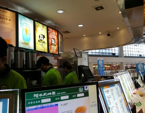 阿水大杯茶,要了杯法式牛奶,13元,太甜,而且比较稀,味道一般般。阿水大杯茶聚焦饮品主业,实施主业导向型发展战略,持续提升阿水大杯茶的品牌美誉度